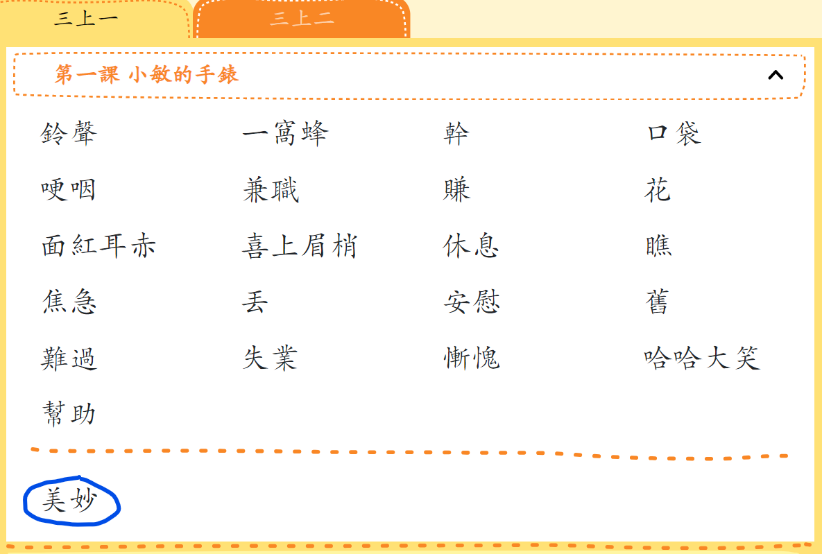 #課文詞語下虛線外的是甚麼詞語?